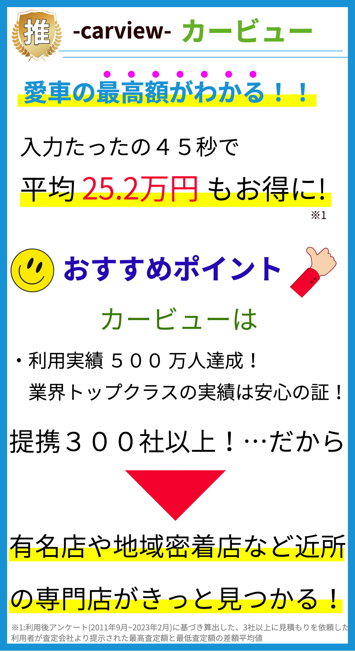 業者によって得意とする車のタイプや年式は異なります。一括査定を利用することで、さまざまな車種や状態に応じた業者を見つけやすくなります。